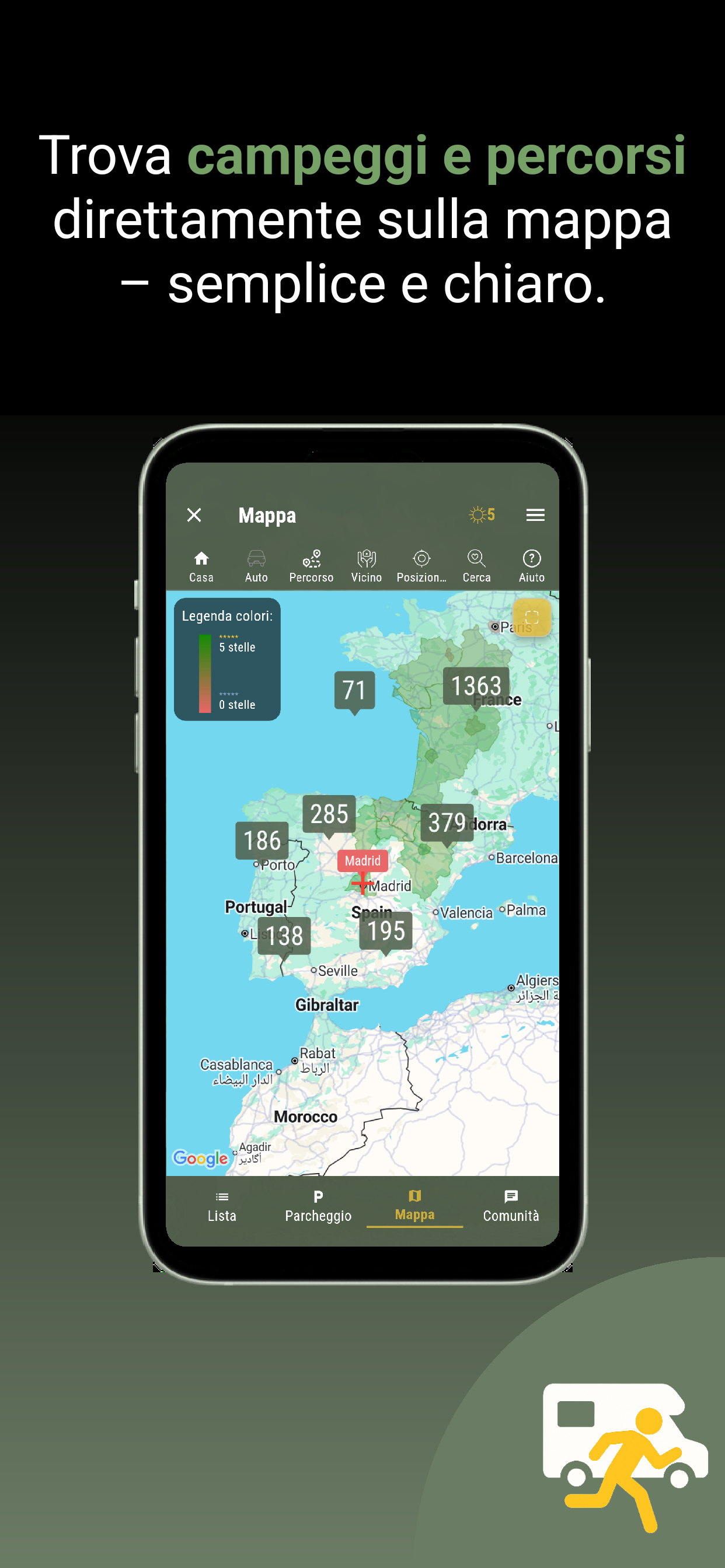 Per la pianificazione del percorso, utilizziamo i servizi dell'API Graphhopper. La tua posizione attuale, così come i punti di partenza e destinazione, vengono trasmessi a Graphhopper per calcolare il percorso. Il trattamento dei dati viene effettuato in conformità con l'Art. 6(1)(b) del GDPR per eseguire la pianificazione del percorso all'interno dell'app.
